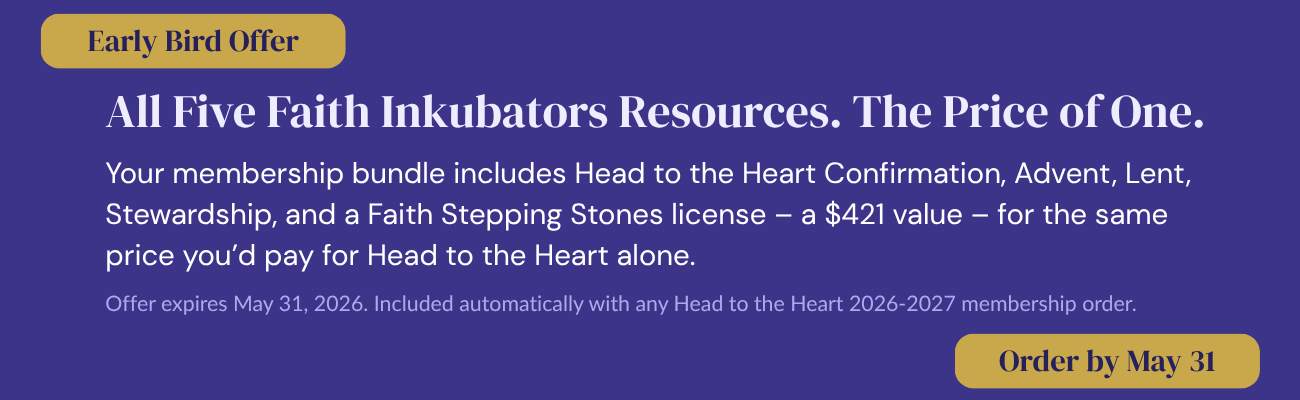 At $74 for an annual license, Faith Inkubators Stewardship is a flexible, all-ages resource built around three themes -- time, talents, and treasures. Designed as a six-week series or condensed into three weeks to fit your schedule. Works as a stand-alone program or integrates with your existing stewardship efforts -- with worship, small group, and family take-home components for your whole congregation. Head to the Heart Confirmation 2026--2027 members receive Faith Inkubators Stewardship as part of their membership.